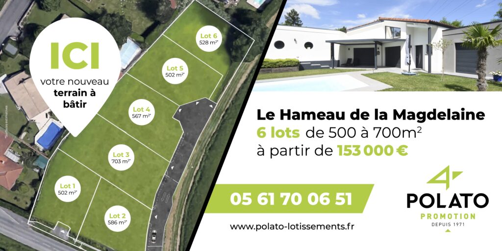 Depuis 1971 , l’entreprise POLATO exerce ses activités d’aménageur foncier (création de terrains à bâtir) et de promoteur immobilier (construction et vente de logements neufs) sur la région toulousaine :